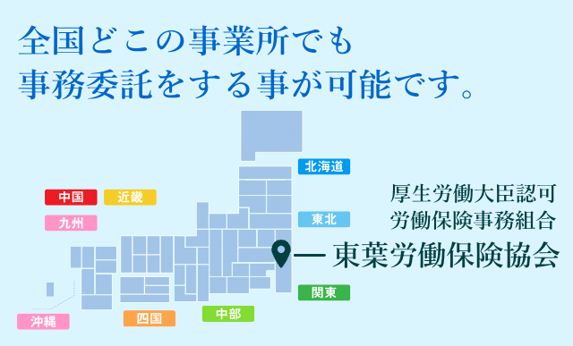 東葉労働保険協会では、日本全国どこの地域の事業所でも業務委託が可能です。